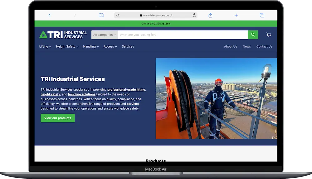The TRI Services previous website was very dated and had not been edited in a long time. The new website needed to present a fresh look in line with their branding, migrating to Shopify to sell their large range of products. Launching with a small selection of around 200 products at launch, we provided all of the necessary training to manage products and sales.